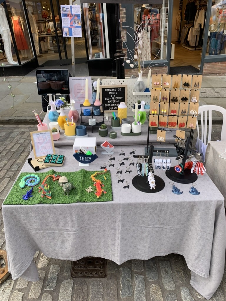 My name is Fraser, I am 16 and I create colourful and lively 3D products at home on my own 3D printer. In addition, I also do my own 3D design and am planning to sell my own designs at future fairs.